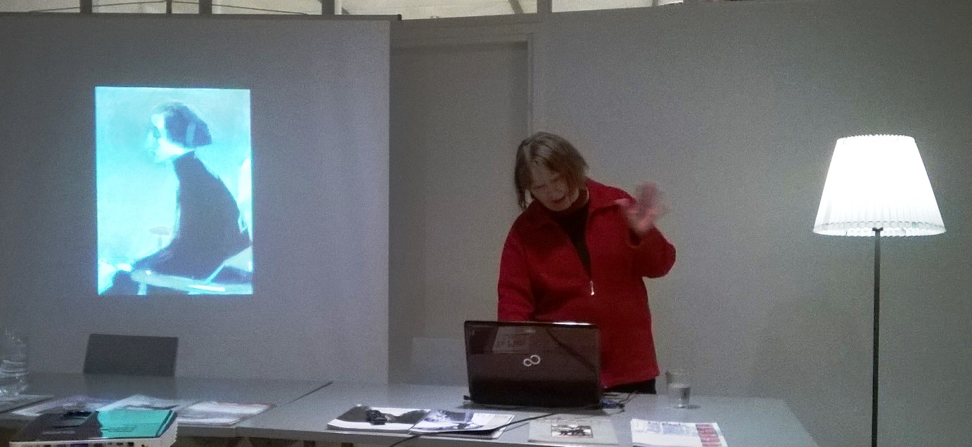 Leena Ahtola-Moorhouse föreläste på finska i biblioteket/esitelmöi suomeksi kirjastossa.