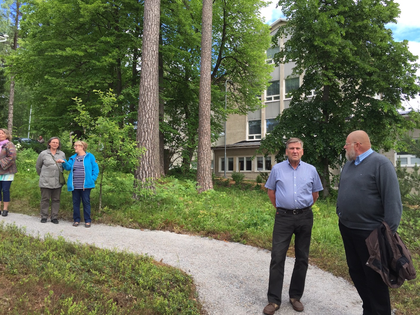 Maija Lehtinen i mitten planerade restaureringen av trädgården. (Foto: S. Mansikkaniemi)