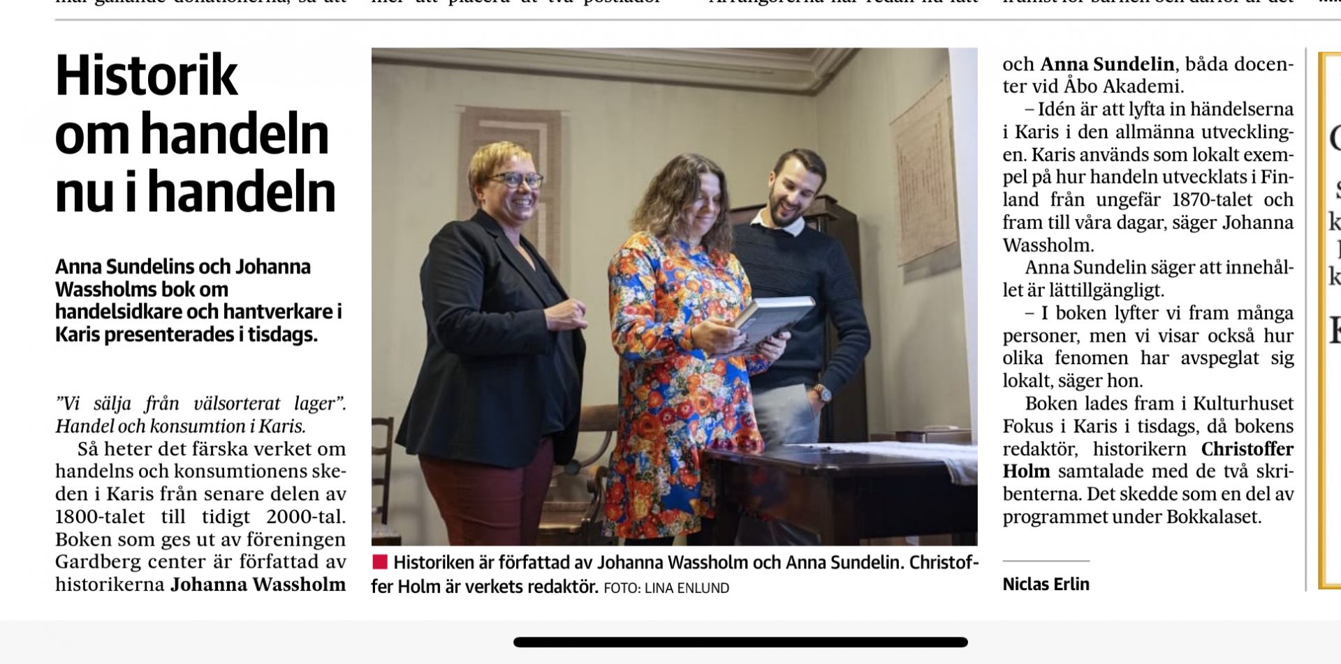 Projektet finansierades av Karis-Pojo sparbanksstiftelse fram till 2023 då Gardberg Center planerade att publicera slutresultatet i bokform.