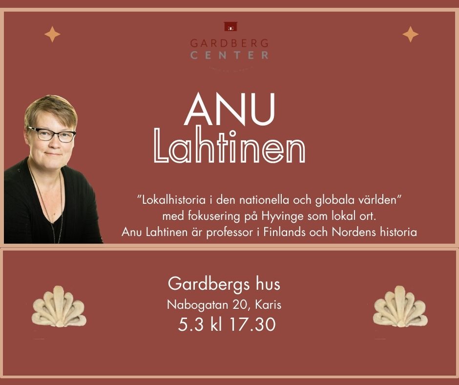 Anu Lahtinen är FD, professor i Finlands och Nordens historia vid Helsingfors universitet, fackboksförfattare och vetenskaplig redaktör.