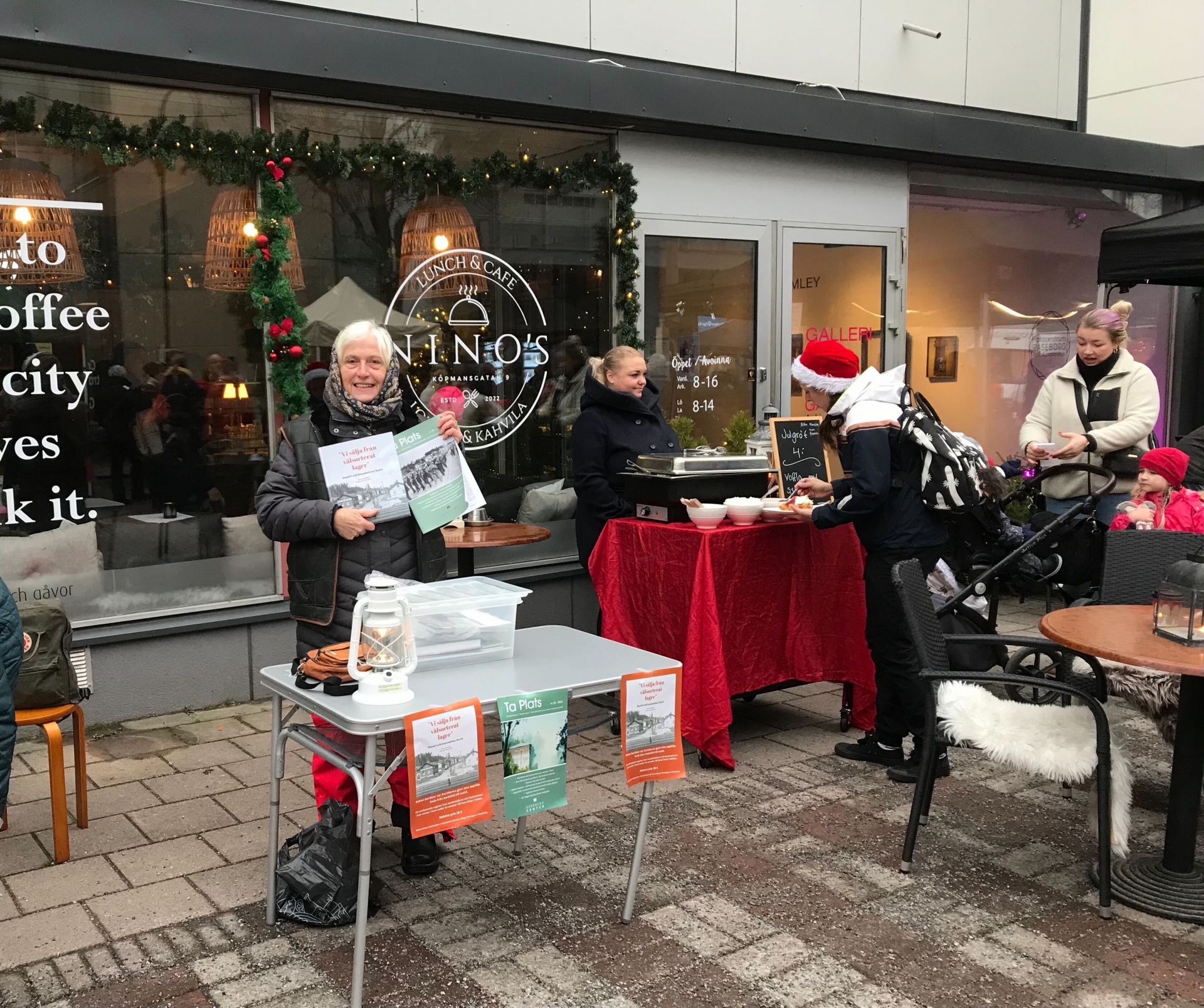 Beatrice och Ami sålde Ta plats och boken om handel och hantverkare på Köpmansgatan och mötte personer som var intresserade, en t.o.m. ville bli medlem!