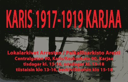 KARIS 1917-1919 KARJAA näyttely avattiin 22.5.2018. Näyttely oli esilla 31.1.2019 asti. Helmikuussa 2019 näyttely on Tammisaaren kirjastossa. Näyttely koostuuu arkiston kokoelmissa olevista kuvista ja asiakirjoista.