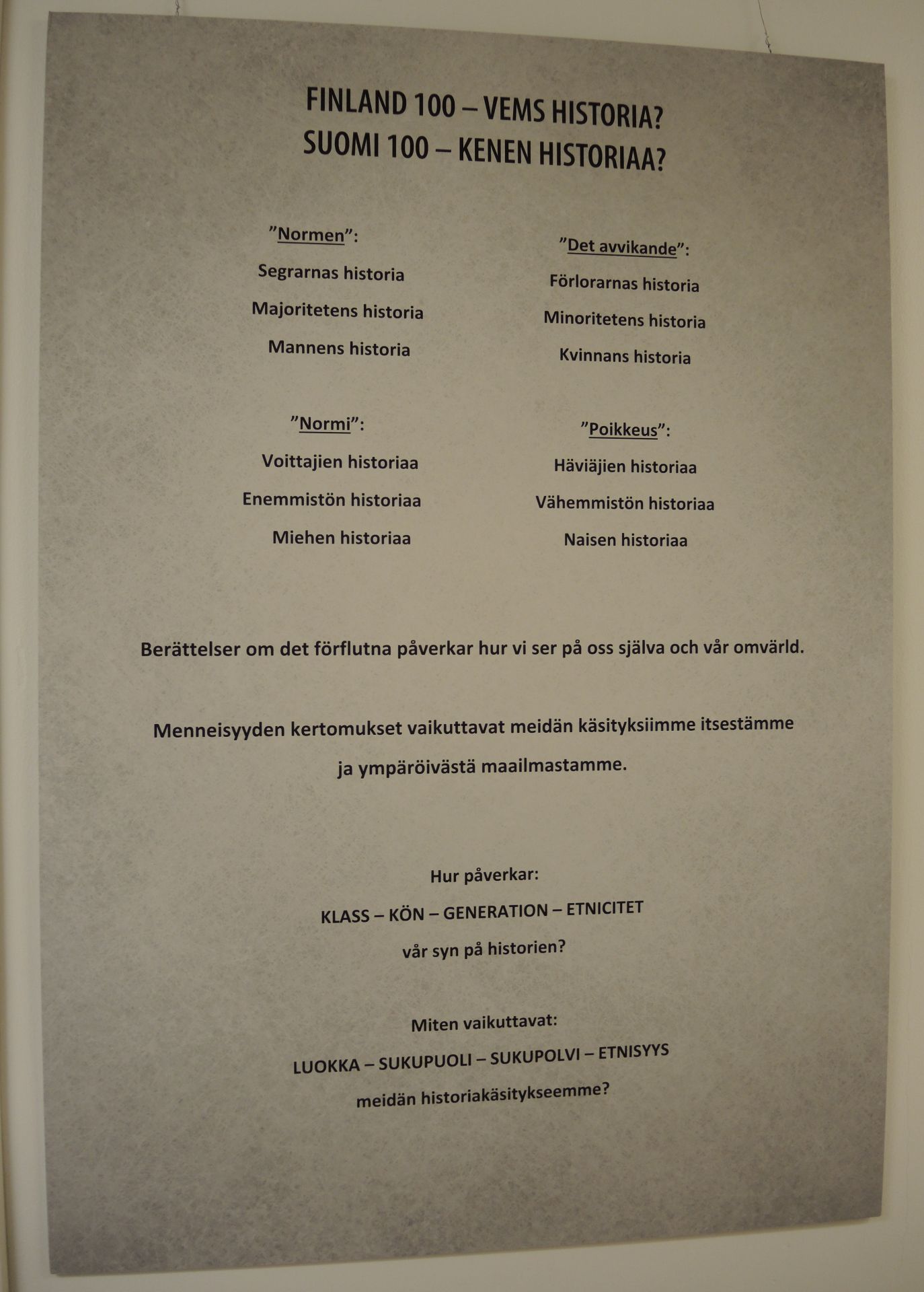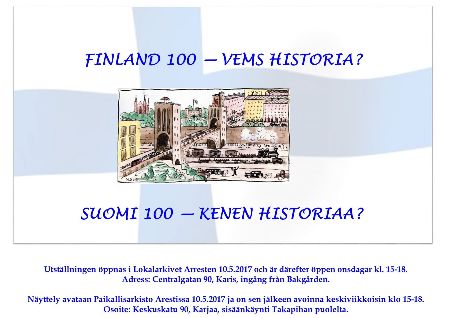 Arresten firade den nordiska arkivdagen i november 2016 med att öppna en ny liten tillfällig utställning Vems historia? - Kenen historiaa? Temat bearbetades vidare och blev en ny utställning i maj 2017.