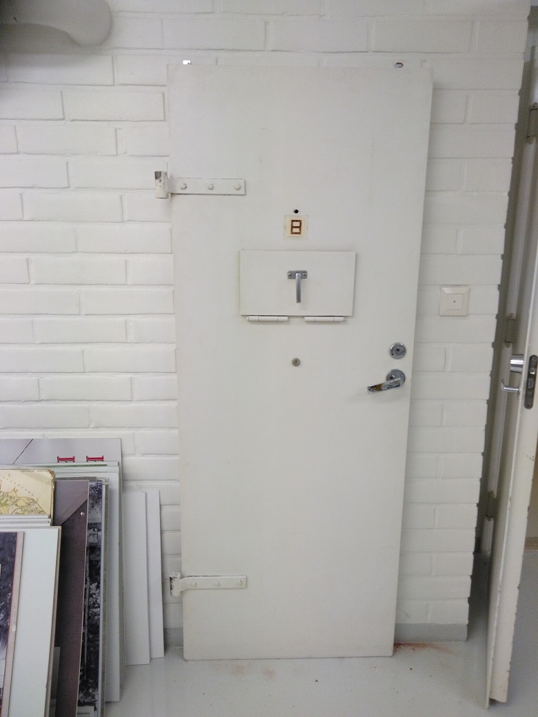 Dörren till cell nr 8 flyttade med, den finns nu på väggen i arkivets mottagningsrum som ett minne från åren i Fokushuset.
