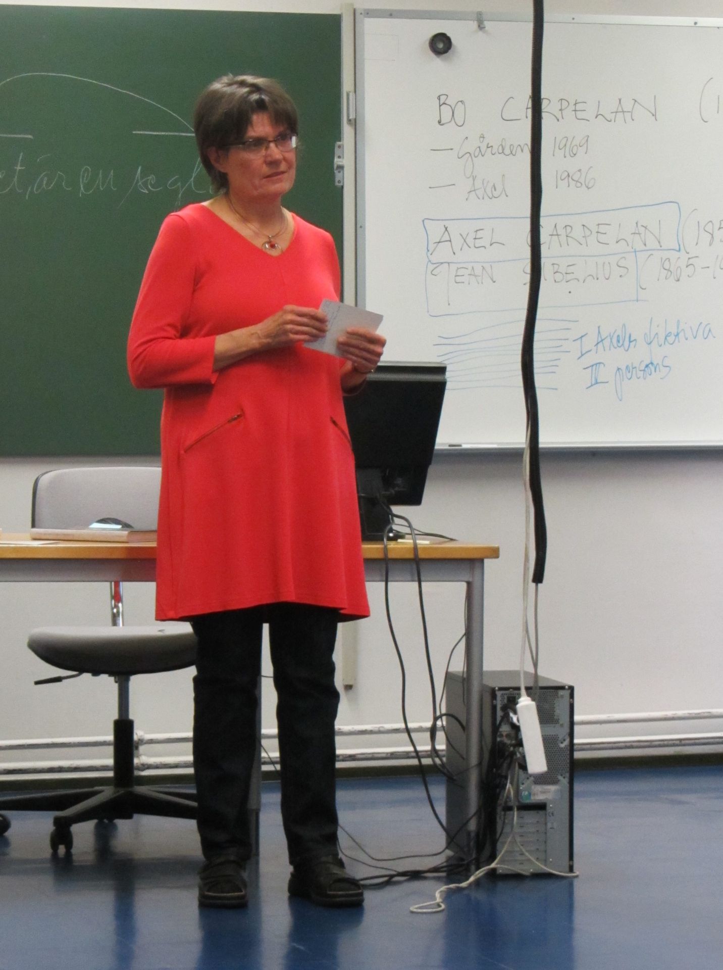 - Kerstin Romberg analyserade Bo Carpelans Axel (1986) utifrån dokumentation, fiktion och bildspråk.