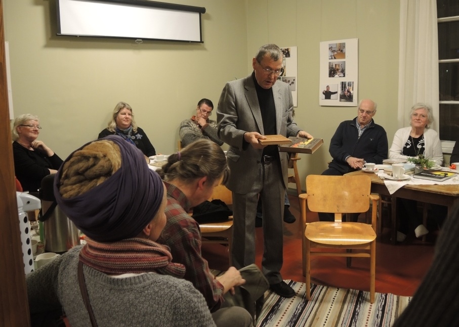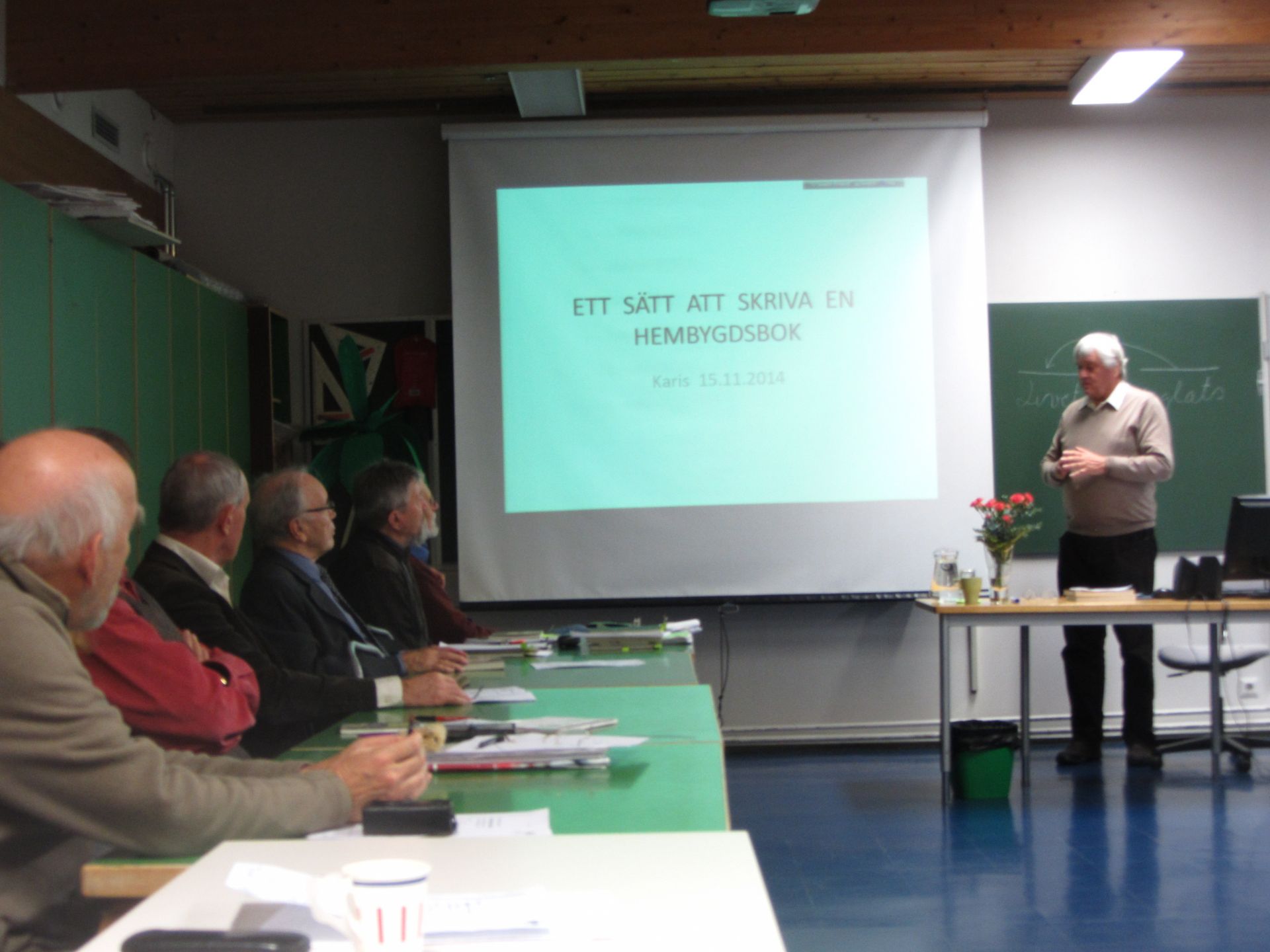 Ordförande Torsten Bergman berättade om hur lokalarkivet grundades, lokaliteternas historia, hur arkivet stöds och finansieras. Arkivföreståndaren Gunilla Lindholm berättade om arkiv i allmänhet, om verksamheten i Arresten och om hur arkivet får material. Synnöve Mansikkaniemi berättade kort om minnestalkona som en arkivbildare.