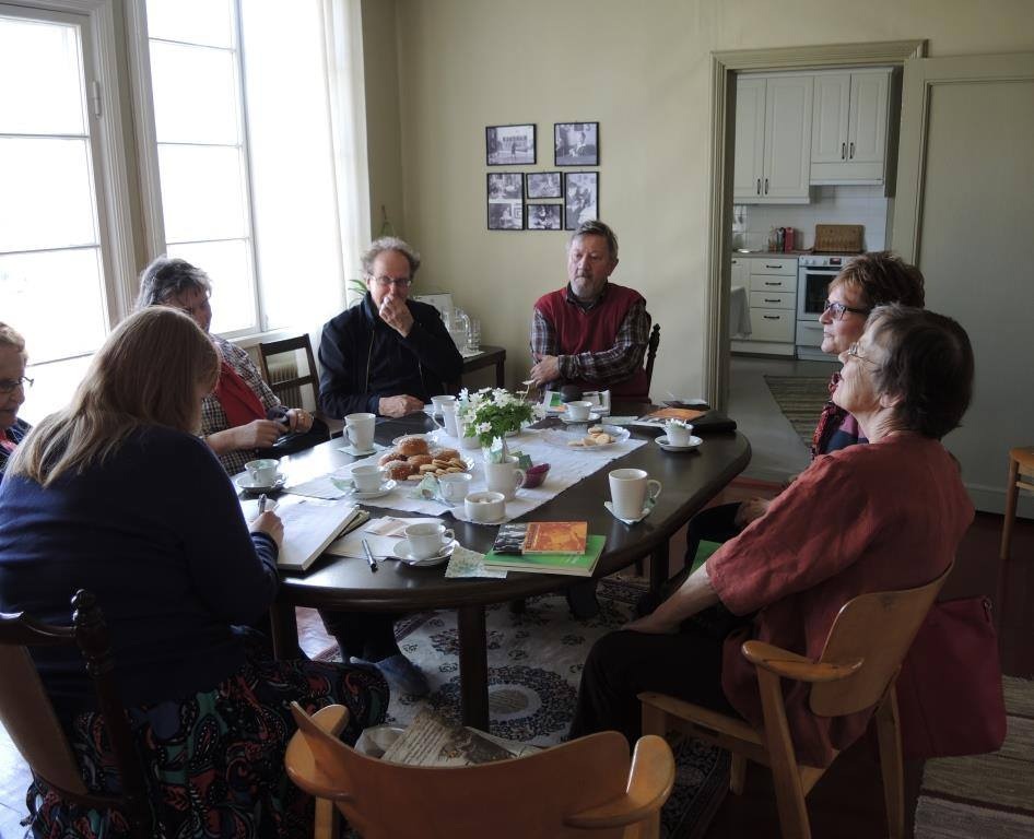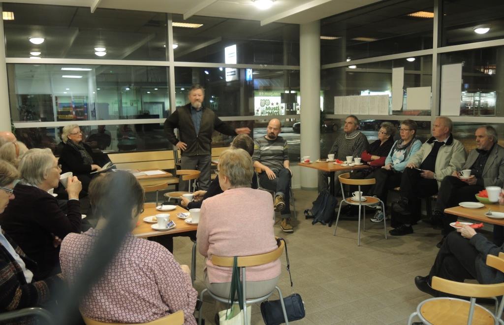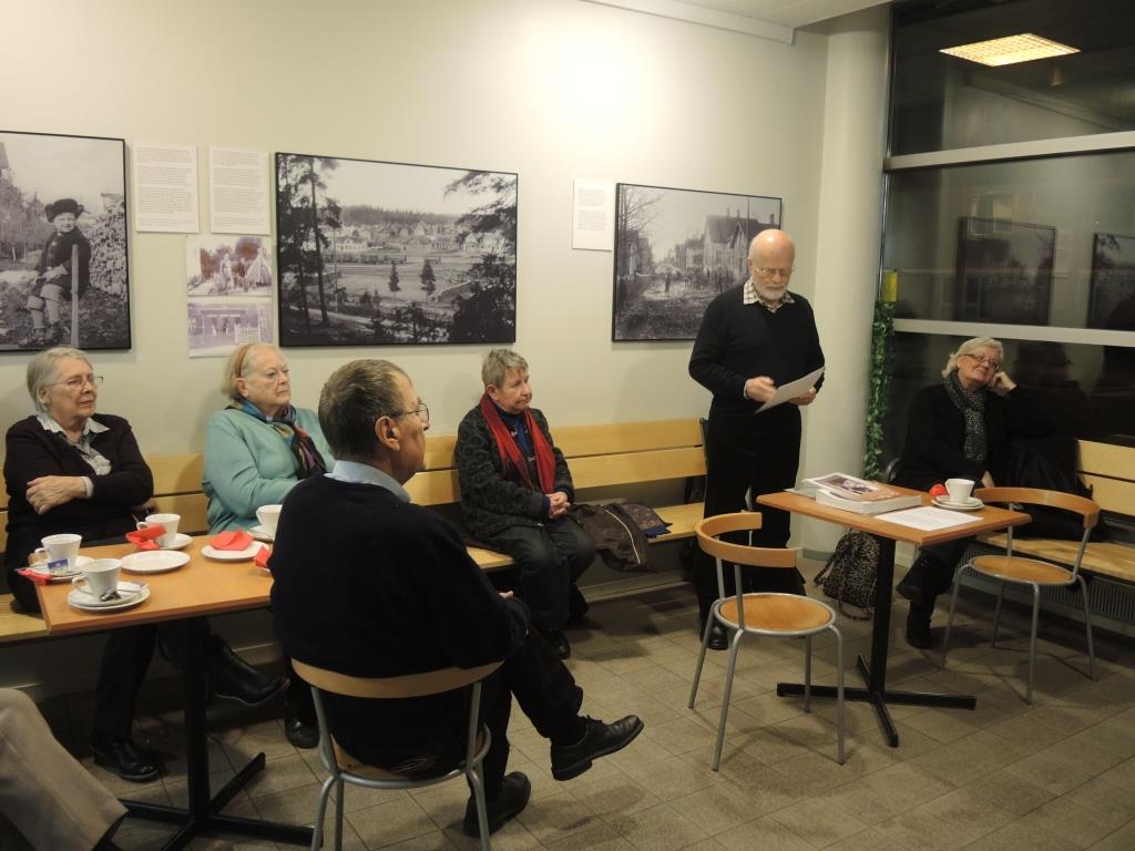 Köpingmarthor, 24 st, besökte Gardberg Center. Torsten Bergman berättade om föreningen, tidskriften Ta Plats, Vi bygger Karis, Forskarforumet. Synnöve Mansikkaniemi berättade kort om minnestalkon. TB fortsatte om nya initiativ som tagits; "Fönster på glänt", som är tänkt för karisbor vilka har barndomsminnen från Karis och lyrikträffar som fått namnet "Rondellen". Första Rondellen blir på kvinnodagen den 8 mars. Marthorna var många, stämningen blev både varm och tät så kaffet och marthornas medhavda Runebergs tårtor smakade gott innan de fortsatte med sitt eget möte. Intresserade för "Fönster på glänt" antecknade sina namn på en kontaktlista.