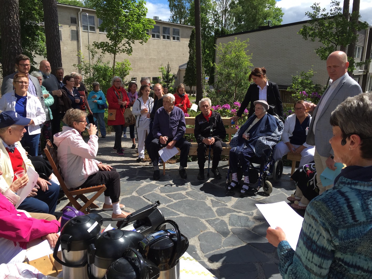 Thua-Lill Eliasson håller festtal för inbjudna gäster från grannskapet, Villa Anemone och eftiset.