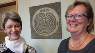 Gunilla Blomqvist och grundande medlemmen Thua-Lill Eliasson visar runt i huset och berättar om verksamheten.