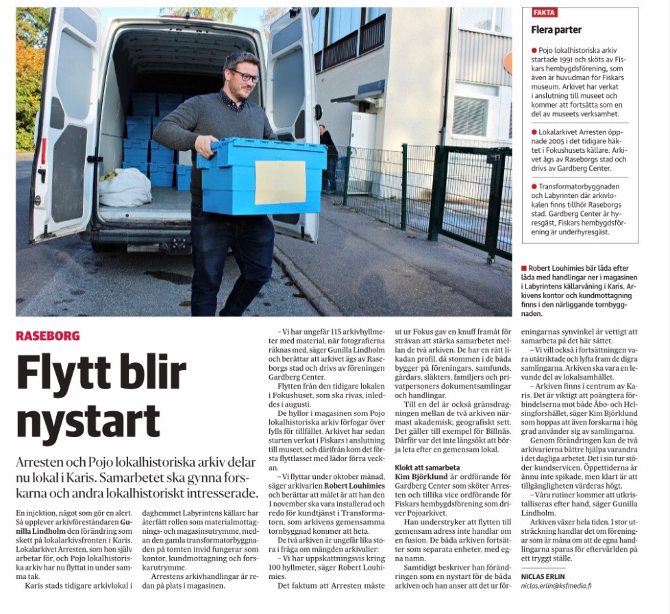 Pojoarkivets flytt i november