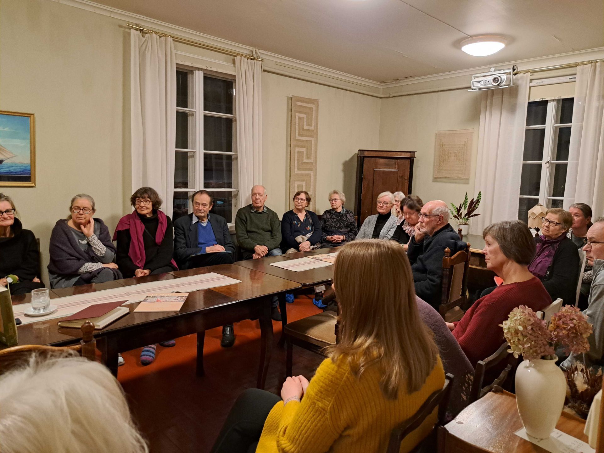 Ett tjugutal intresserade åhörare kom för att lyssna till Anu Lahtinens föredrag om Hyvinge lokalhistoria i den nationella och globala världen.