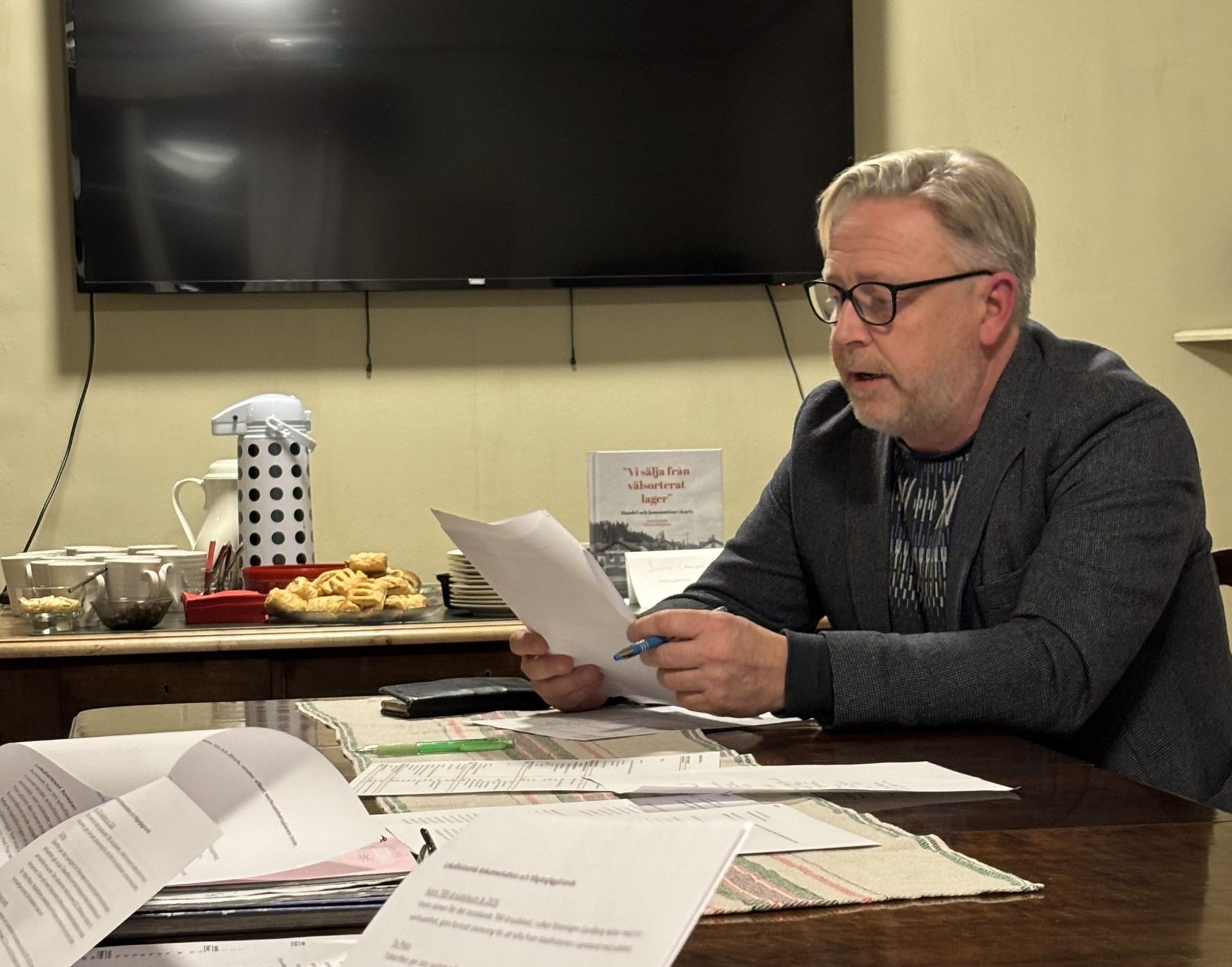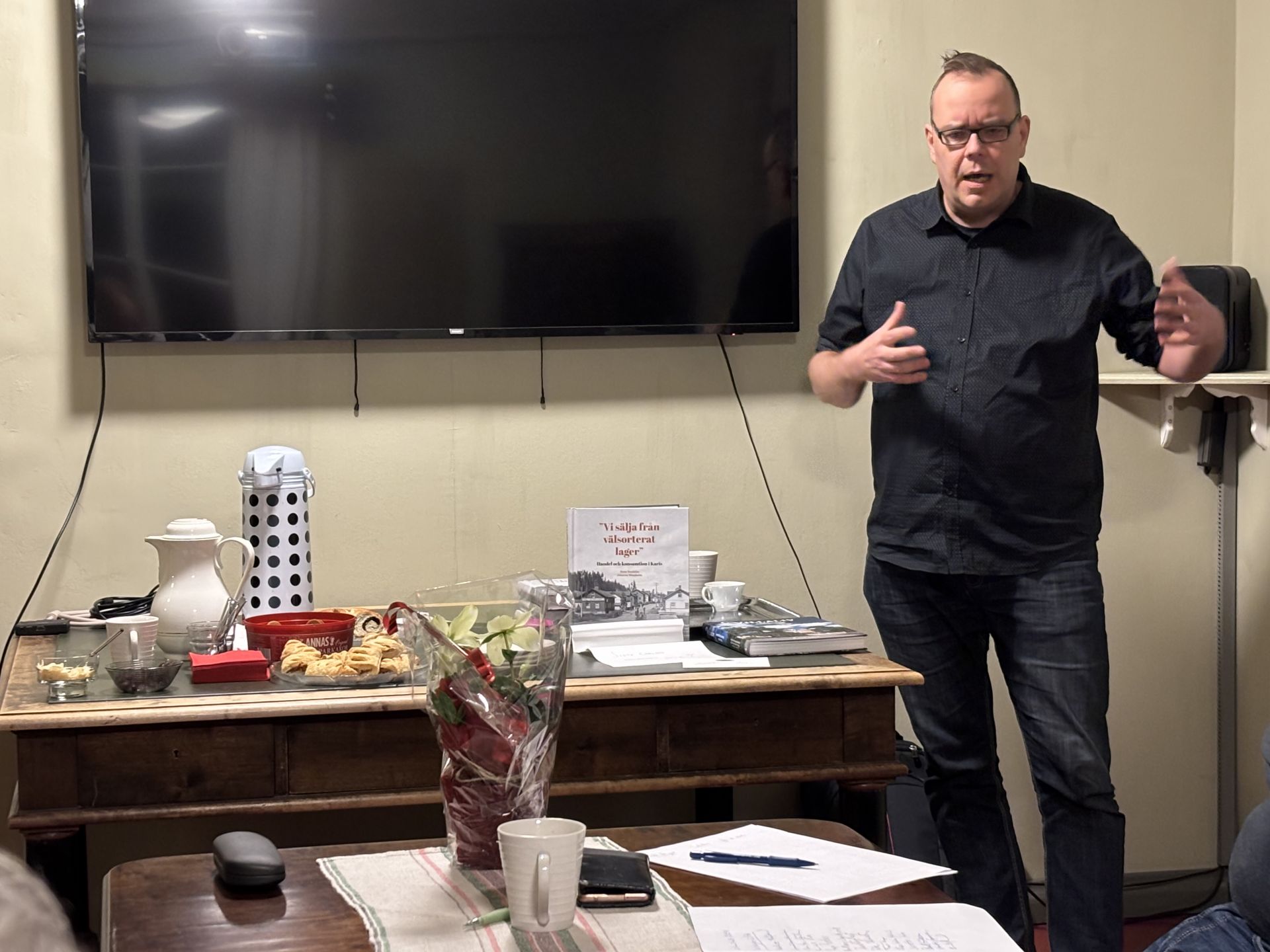 Historikern Aapo Roselius, ny styrelsemedlem för inkomande år, presenterade tankar och visioner kring Historiedagar – ett sätt att föra fram historien. (Foto: Synnöve M)