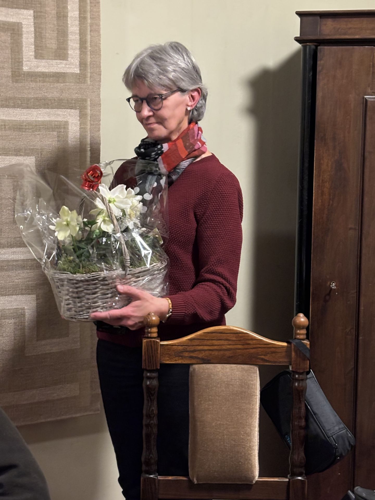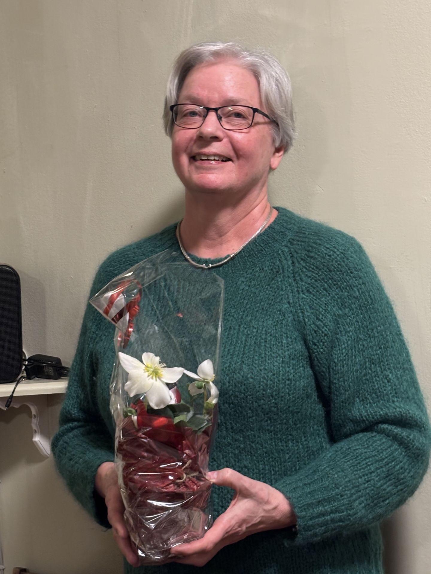 Föreningen tackade också kassören Klara Sacklén-Sjöblom och redaktören för bokprojketet Christoffer Holm med en julblomma .(Foto:Synnöve M)