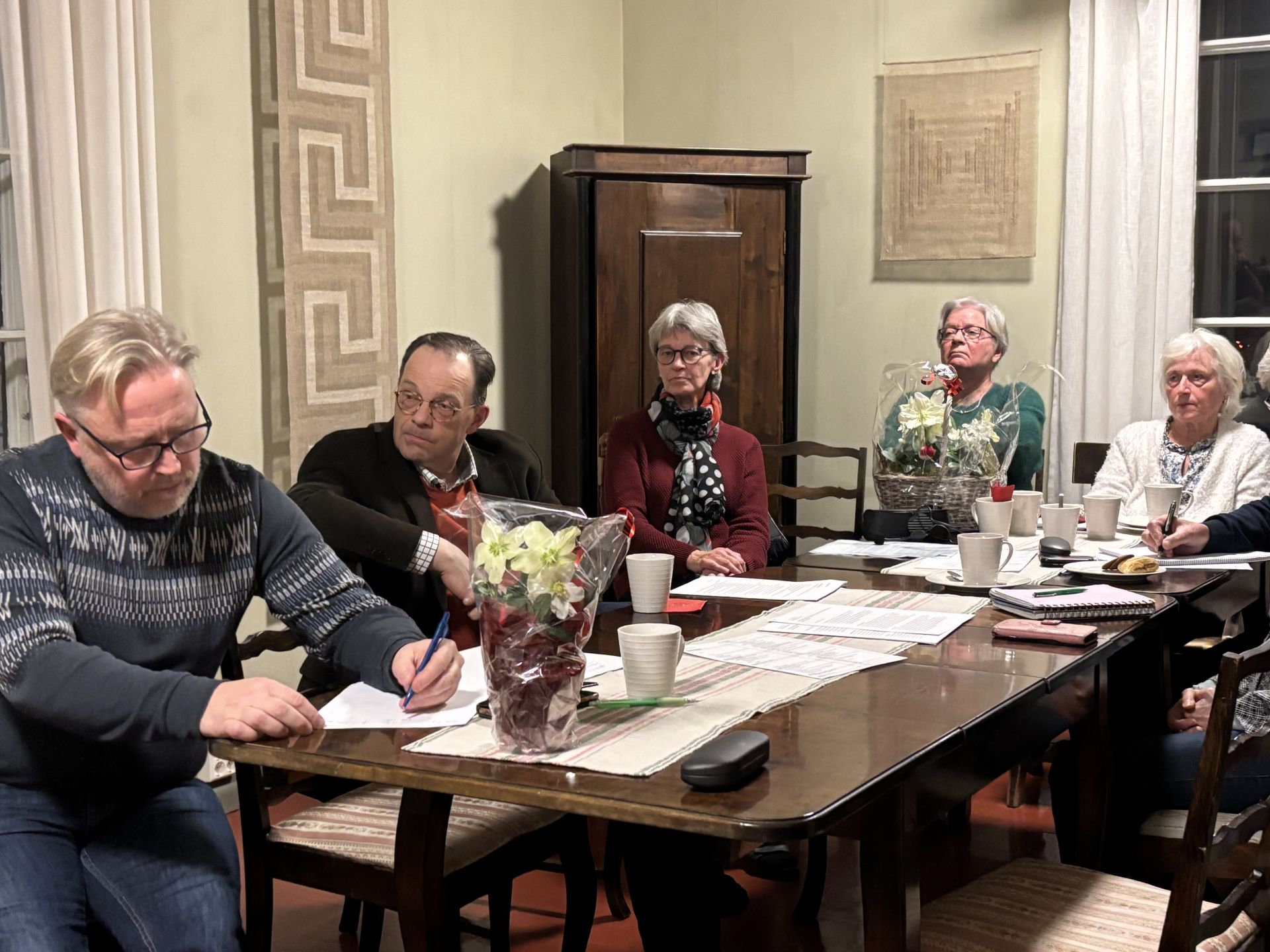 Styrelsen 2024: ordf. Kim Björklund, kassör Klara Sacklén-Sjöblom, Thua-Lill Eliasson, Ann-Marie Lindqvist, vice ordf. Meri Arni-Kauttu, sekreterare Beatrice Blåfield och Synnöve Mansikkaniemi. Christoffer Holm hann tyvärr smita.