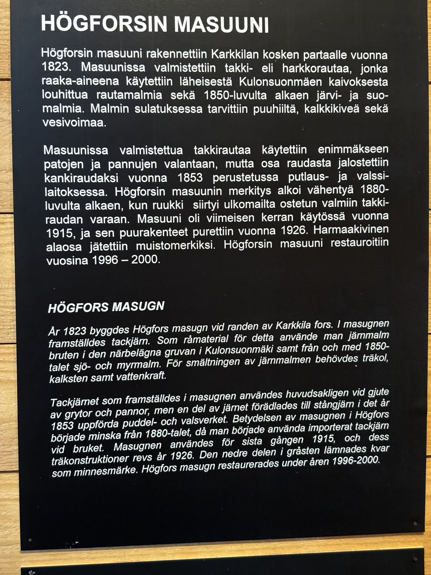 En vacker sensommardag åkte vi 35 deltagare och ordförande med buss till Högfors gamla bruksområde. Utflykten hade planerats i samarbete med Pojo- och Fiskars hembygdsförening.